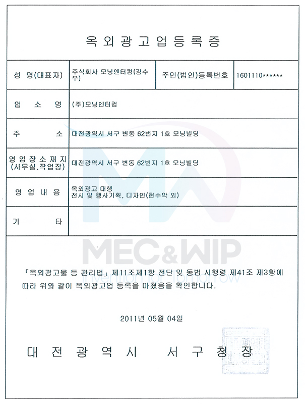 옥외광고업등록증